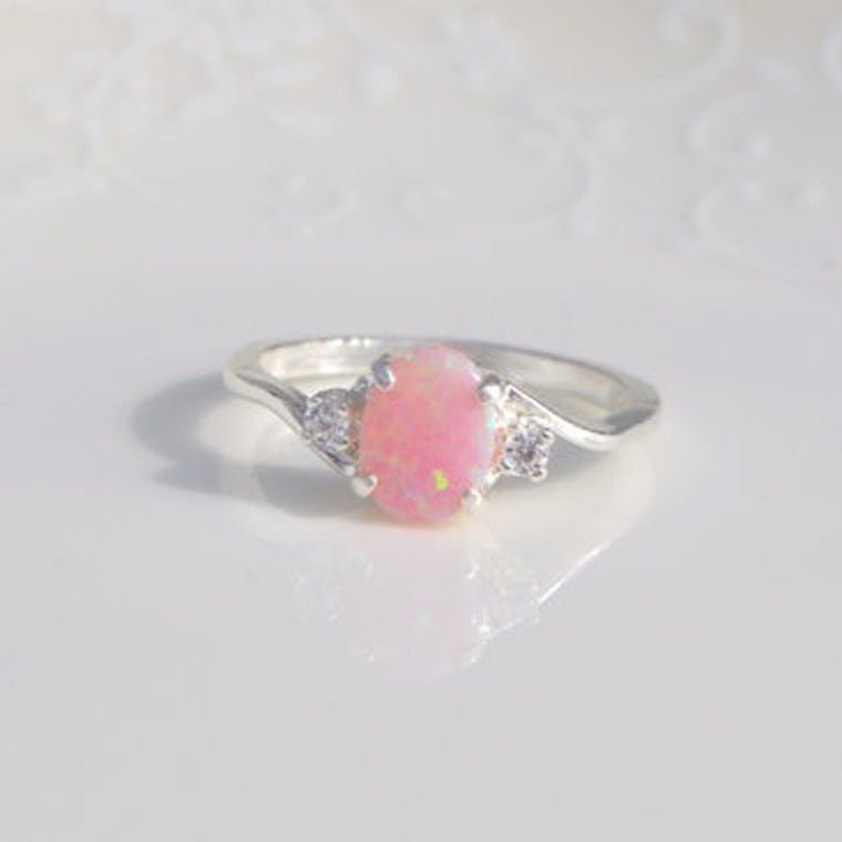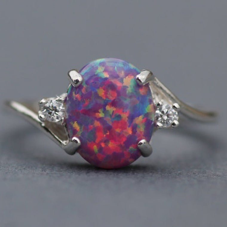 SKU: 7235922100424-人造树脂澳宝戒指椭圆形切割火蛋白石钻石饰生日礼物礼物新娘订婚 标签: