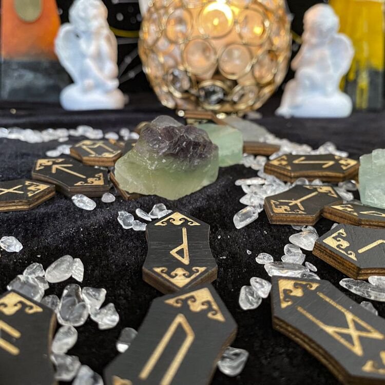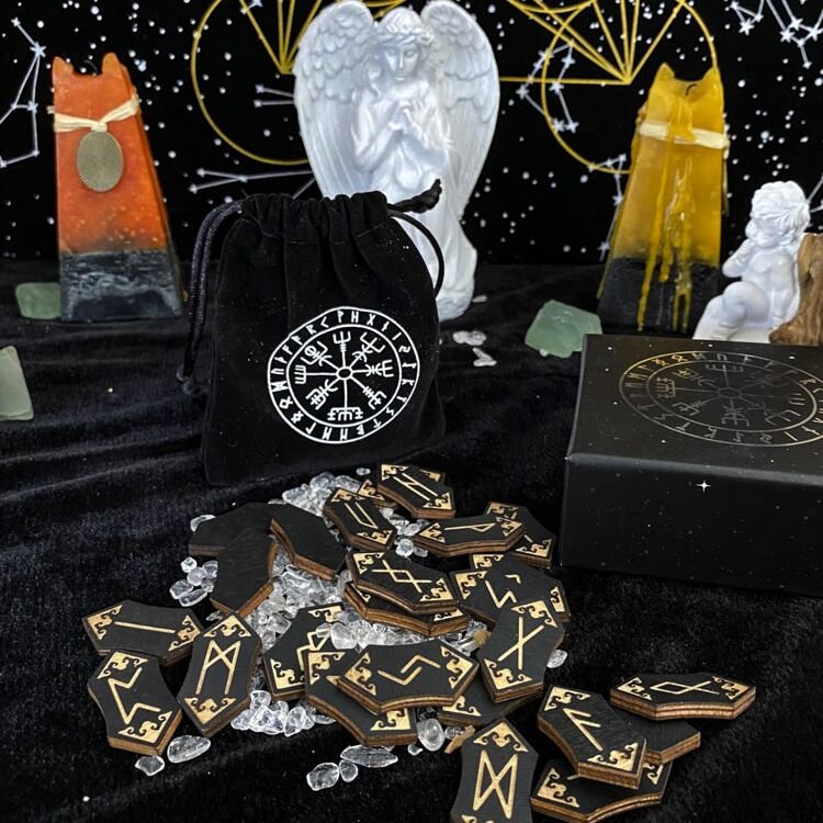 产品内件:24片卢恩符文+1片空白符文,专用卢恩占卜收纳袋