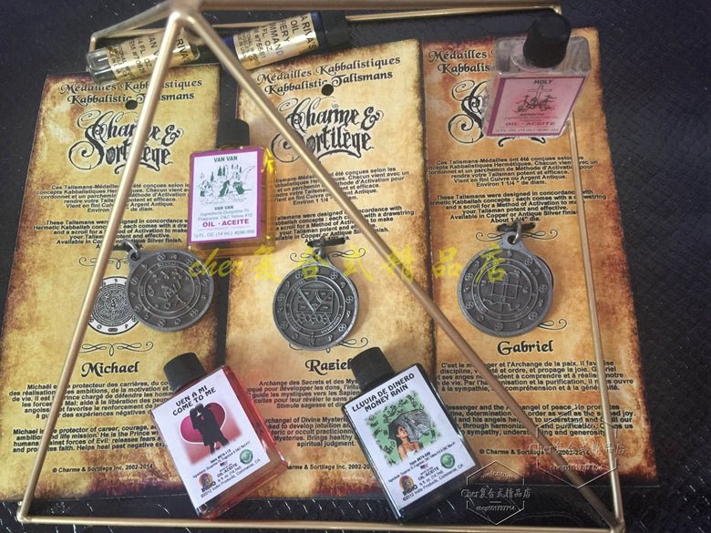 护身符的设计是严格按照赫密士卡巴拉戒律从古老和传世的文本中收集,以最大限度地发挥其保护和神奇的效果。所有这些护身符和护身符都绑定在一张精美的详细卡片上,卡片用英语和法语印制。