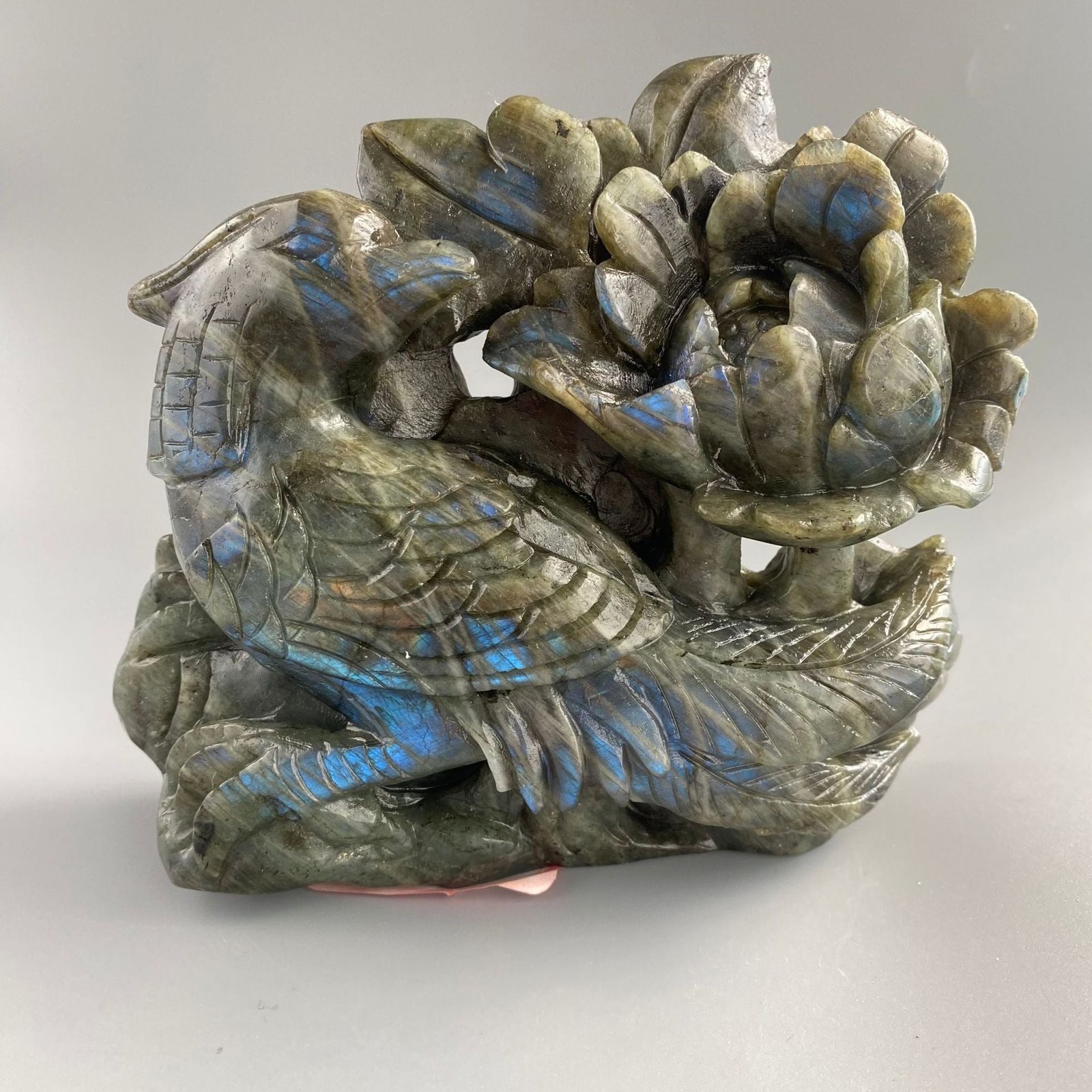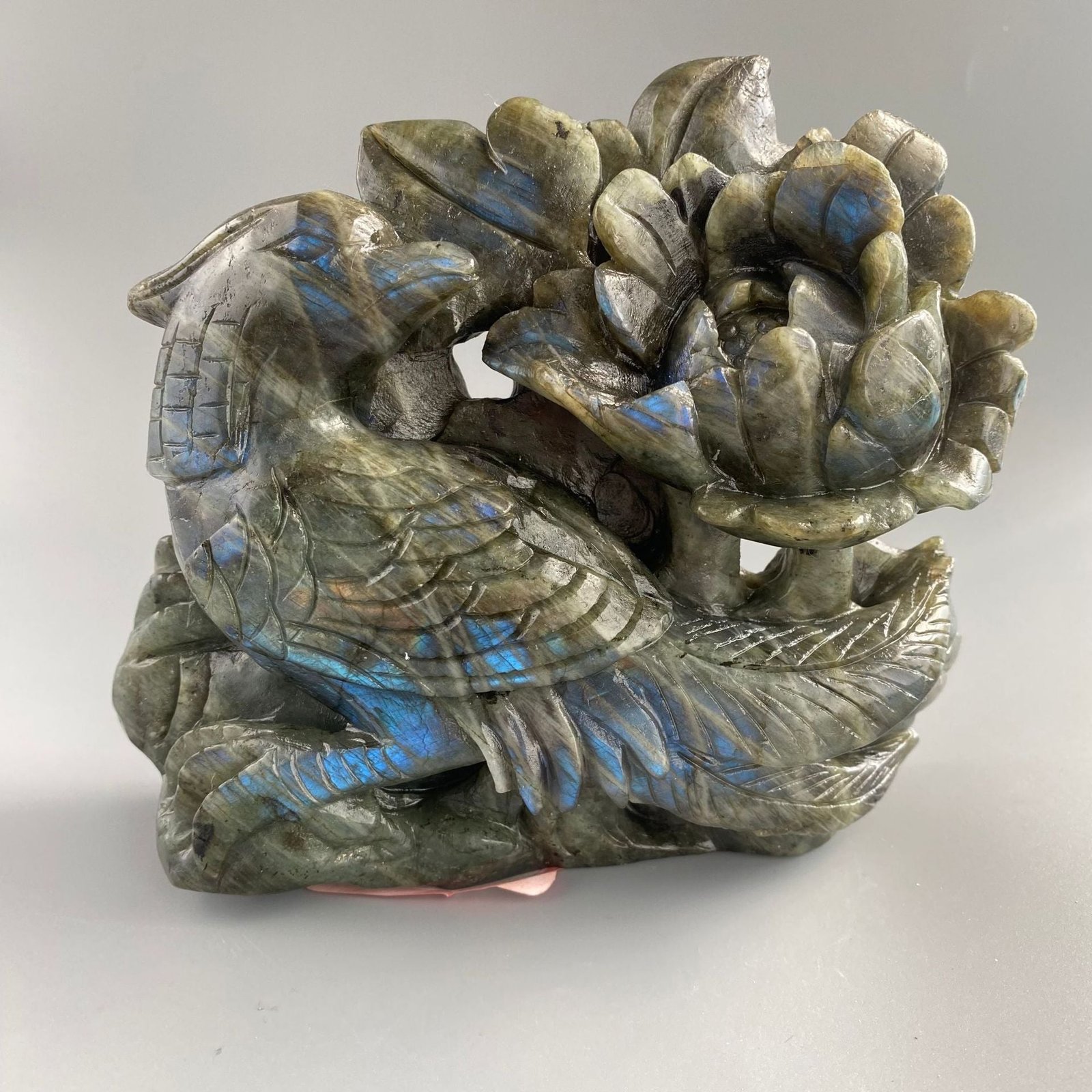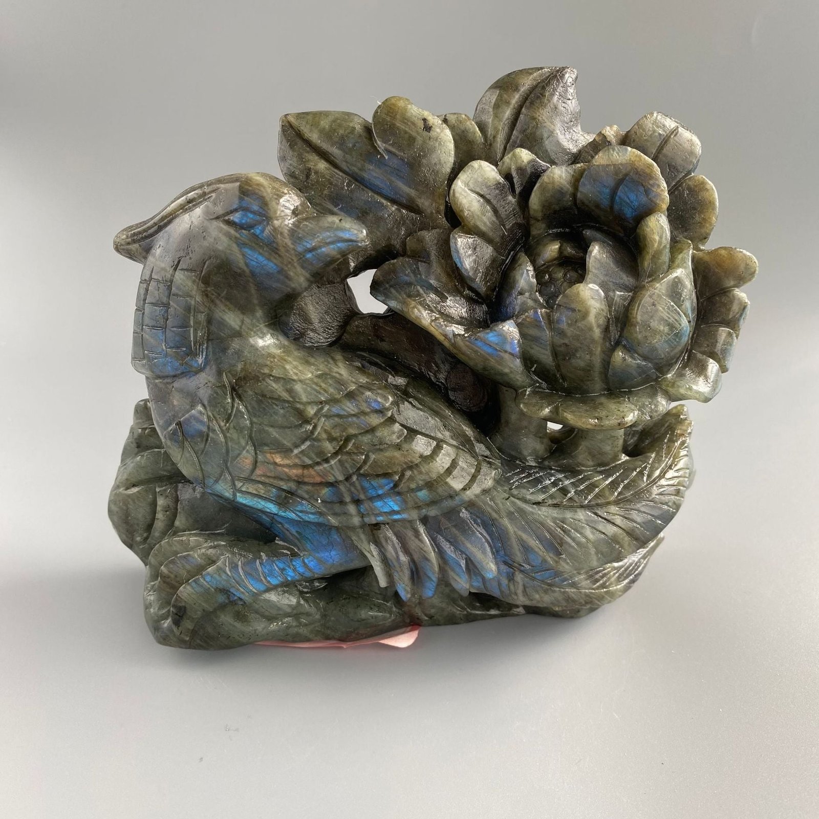 天然拉长石孔雀手工雕刻件桌面摆件手工雕刻件装饰