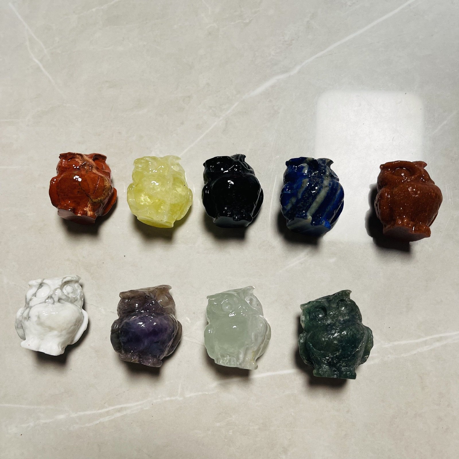 天然水晶多种材质猫头鹰 原石雕刻打磨水晶摆件挂件
