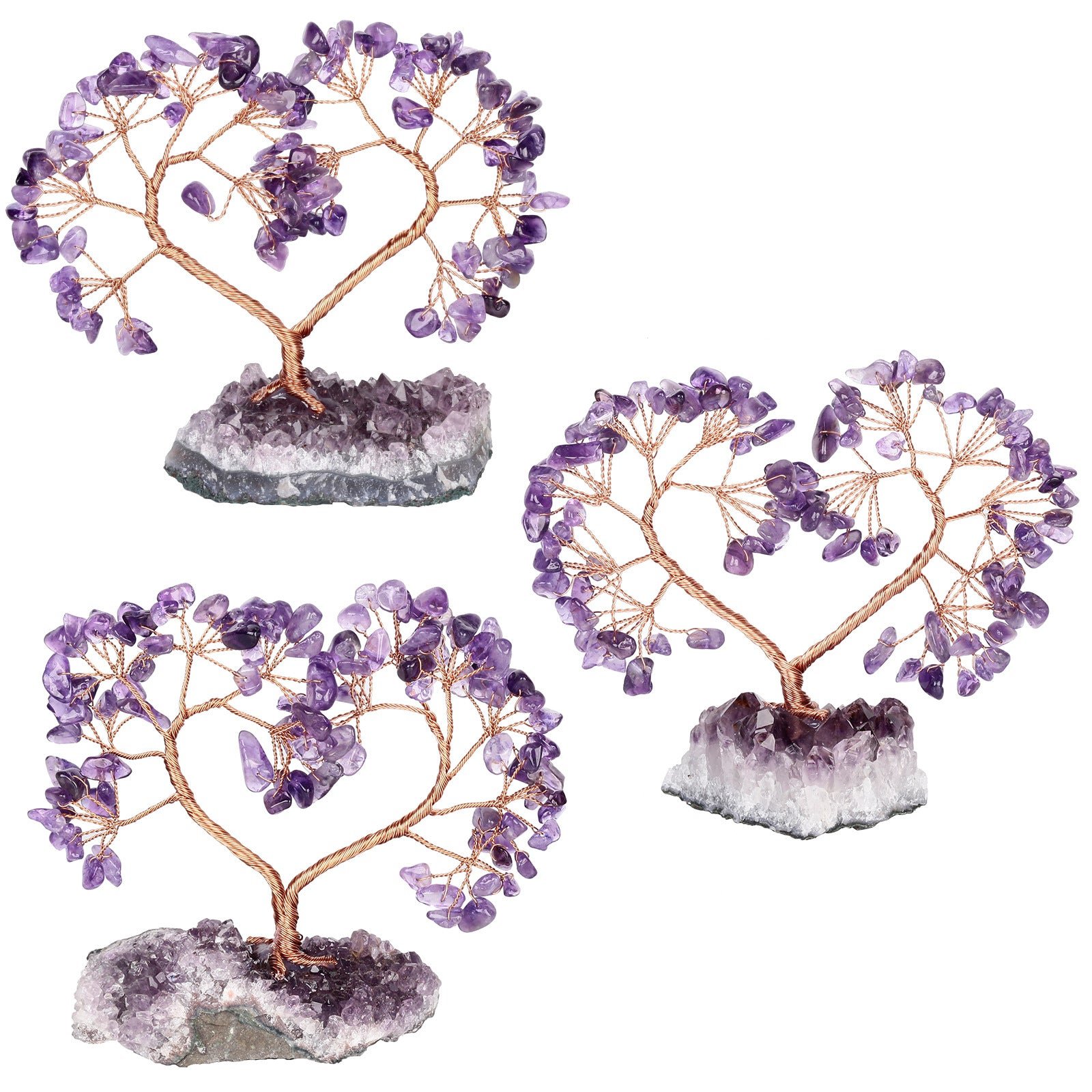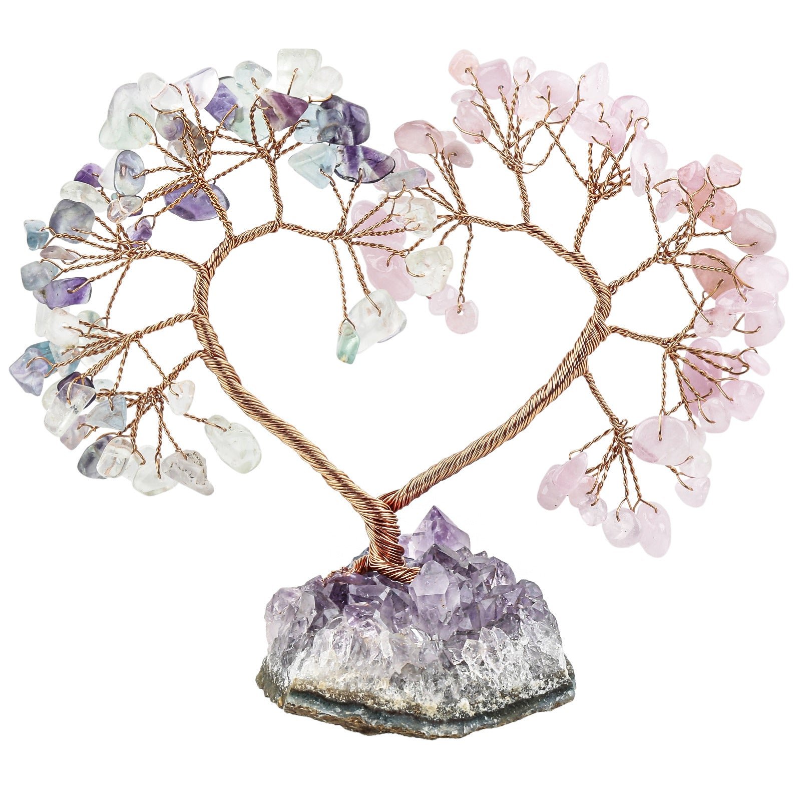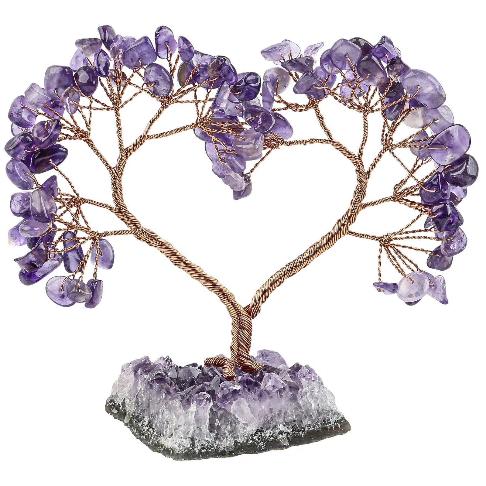 SKU: 7259358298312-天然水晶心形树紫晶花原矿石底座-能量发生器-水晶同心树许愿树摆设 分类: