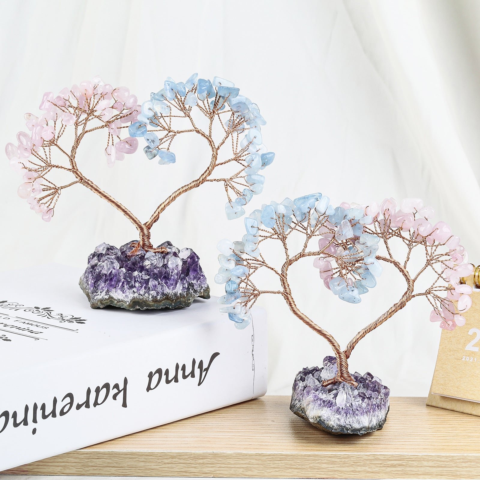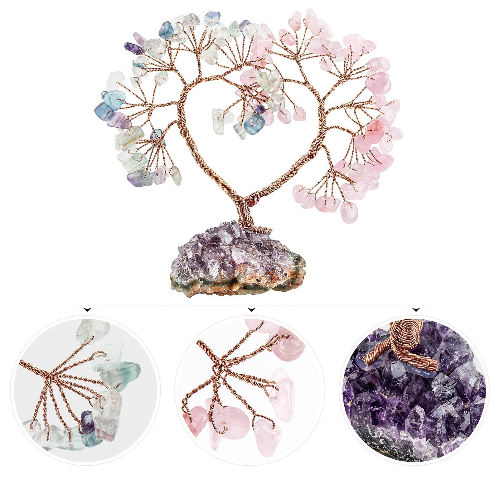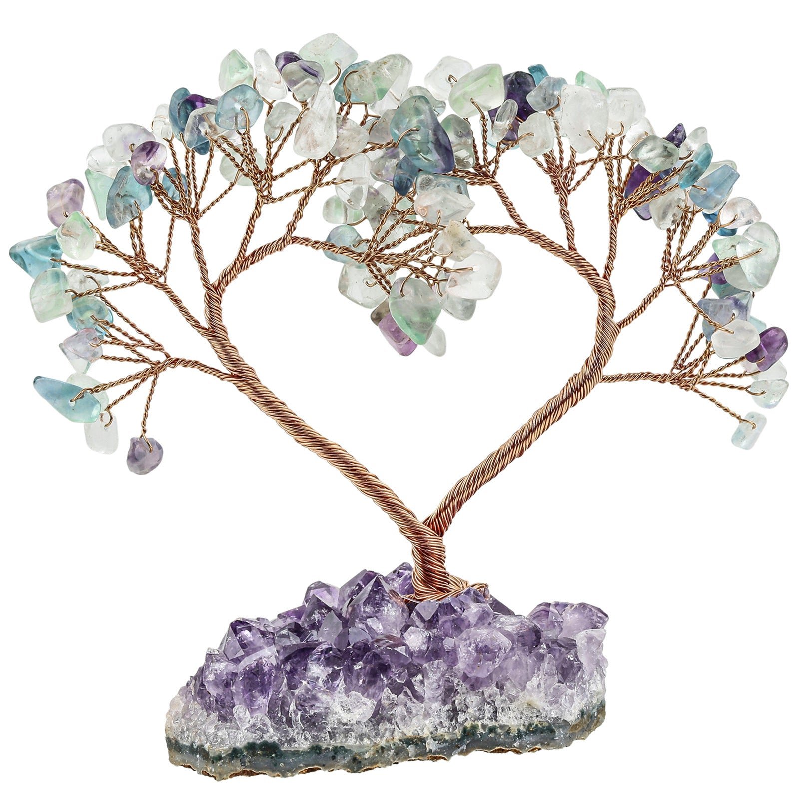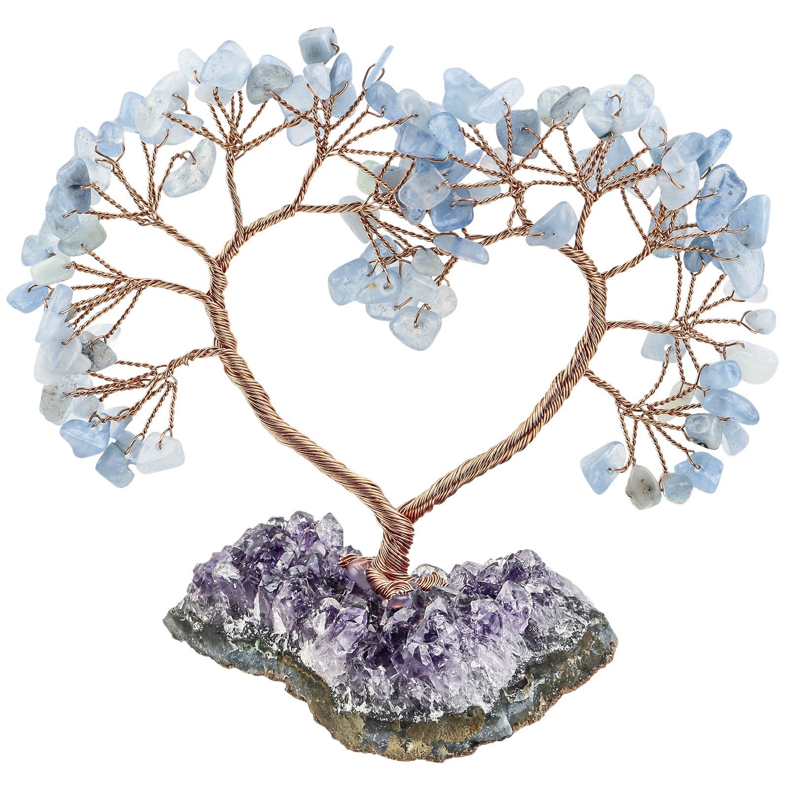 SKU: 7259358298312-天然水晶心形树紫晶花原矿石底座-能量发生器-水晶同心树许愿树摆设 分类: