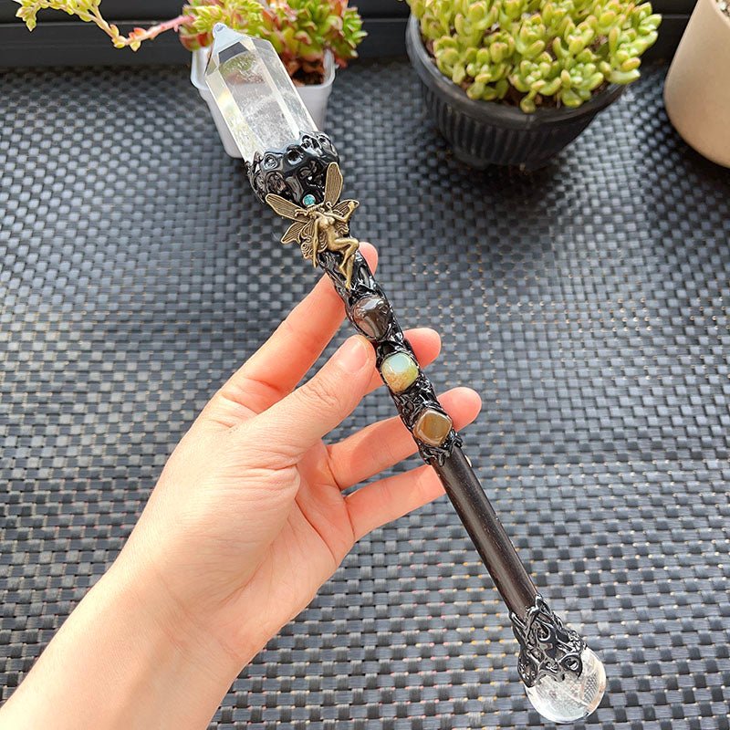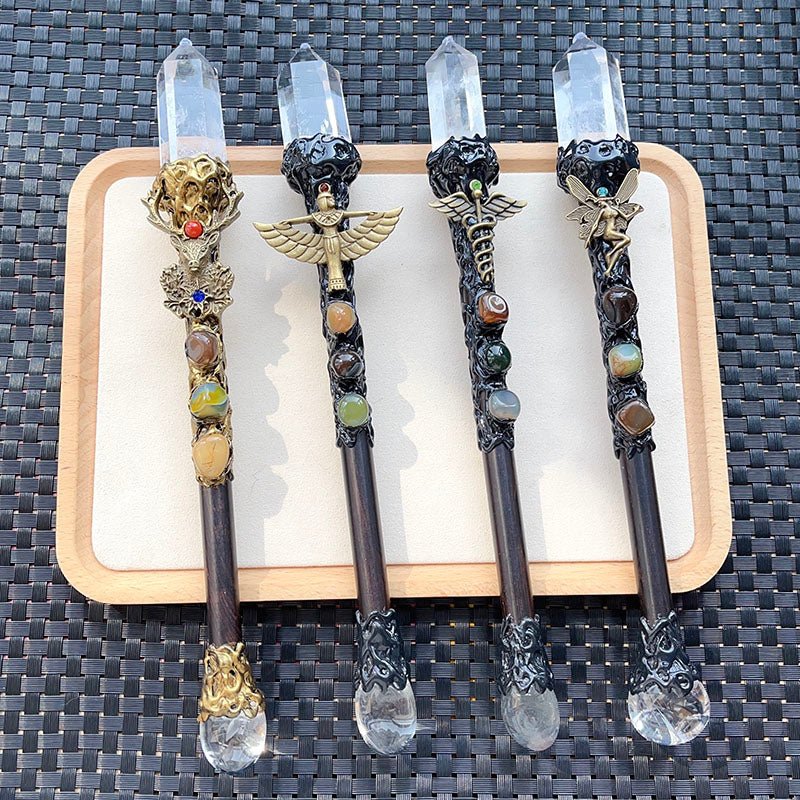 天然水晶权杖白水晶权杖魔法棒魔法棍手工制作原创设计水晶摆件