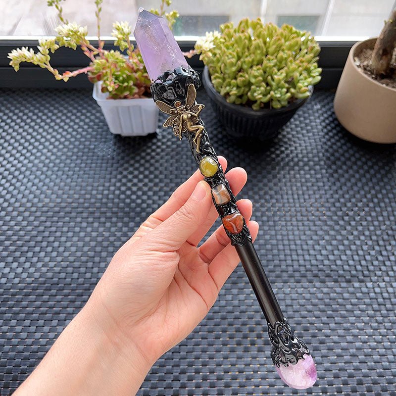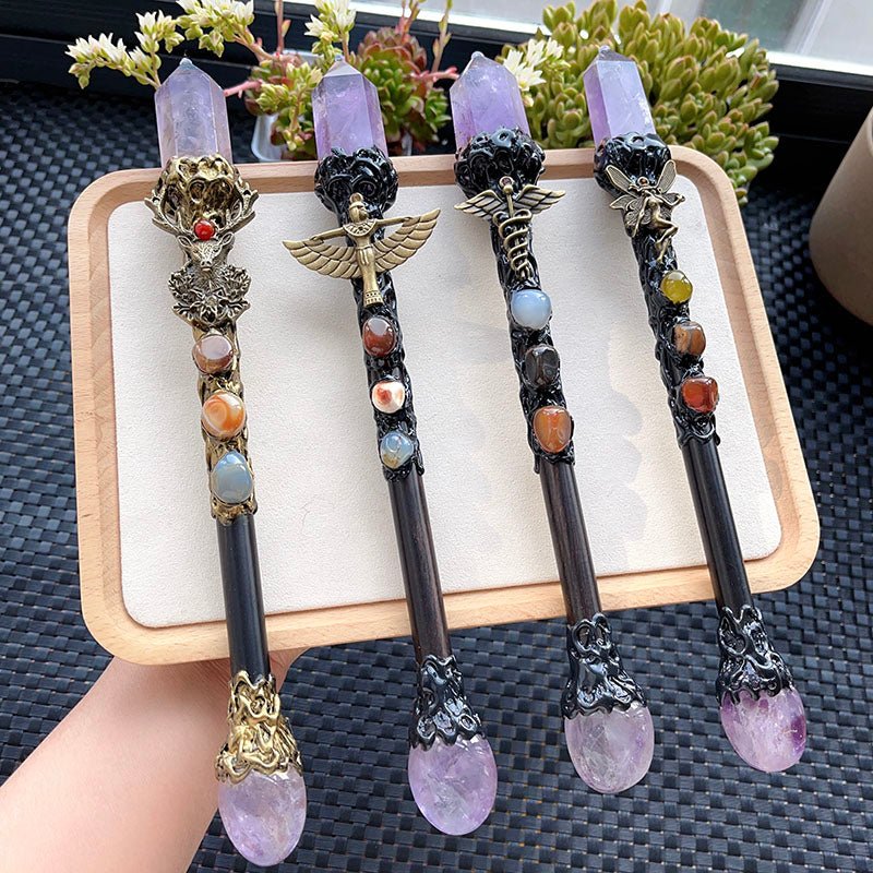 天然水晶权杖紫水晶权杖魔法棒魔法棍手工制作原创设计水晶摆件