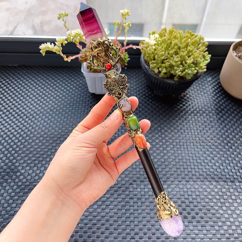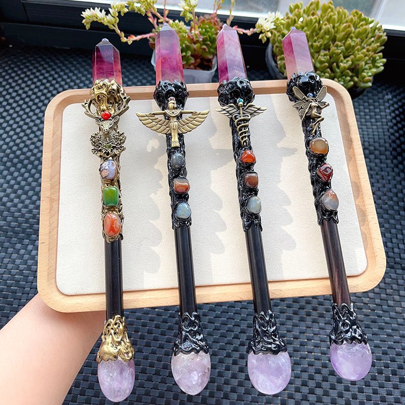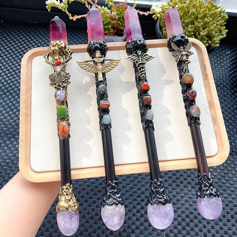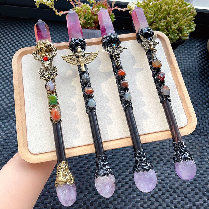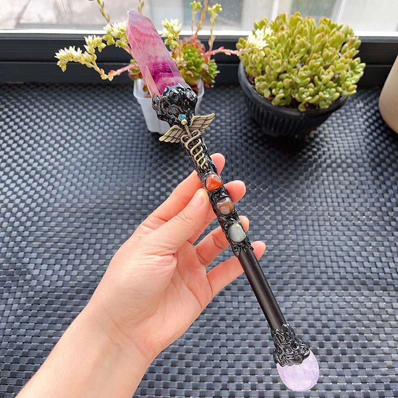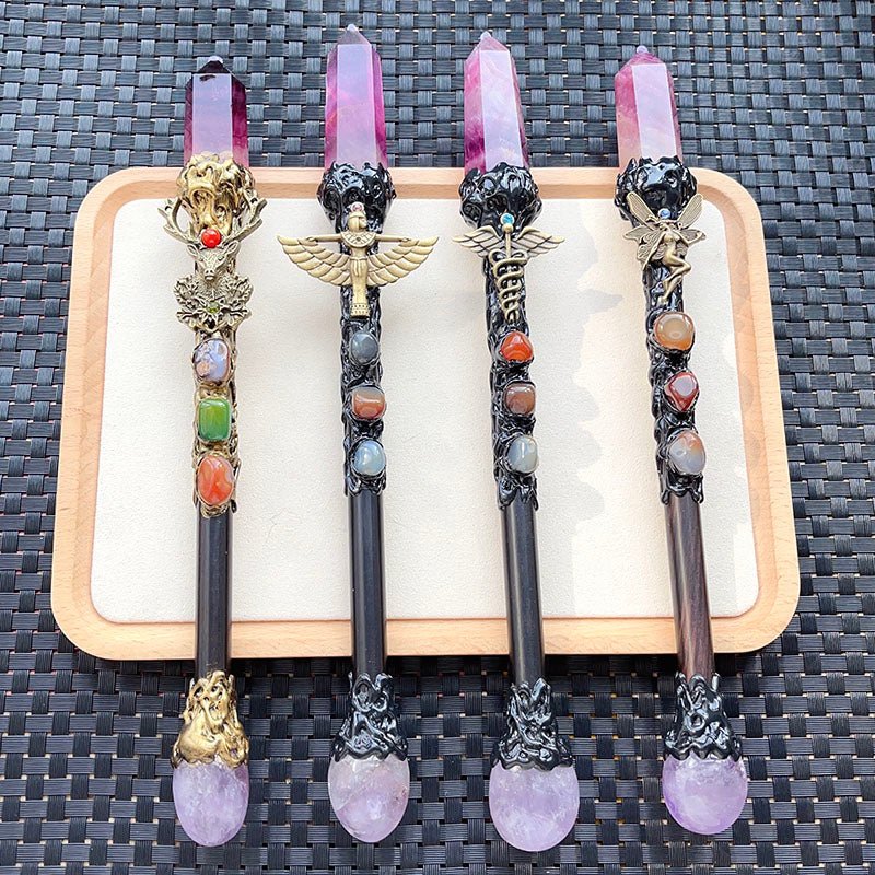 天然水晶权杖紫萤石权杖魔法棒魔法棍手工制作原创设计水晶摆件
