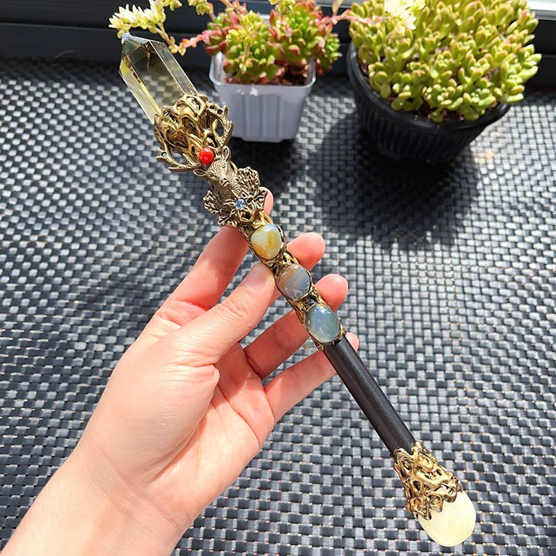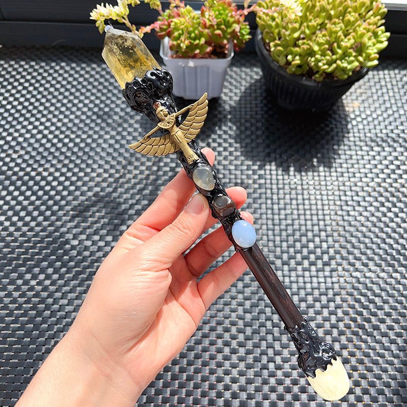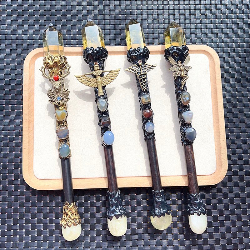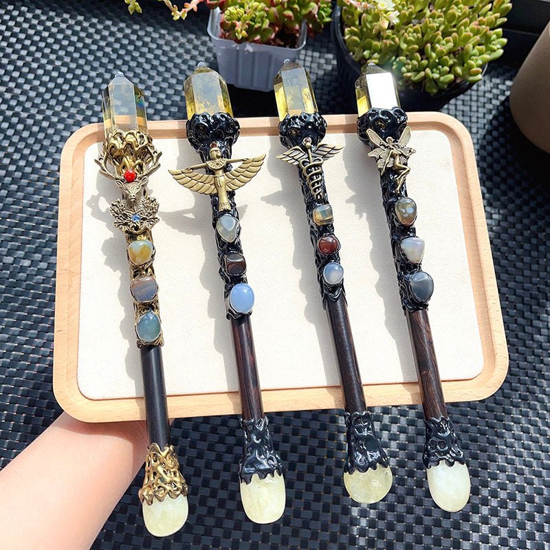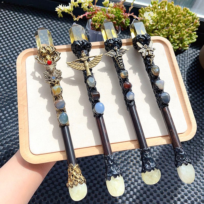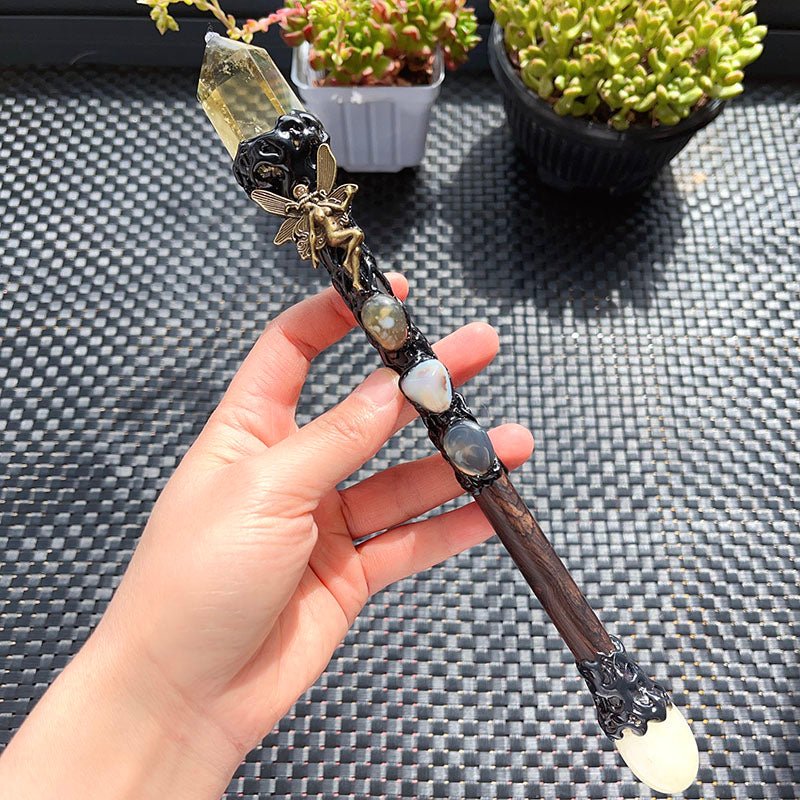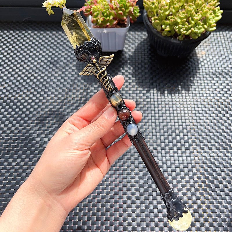 天然水晶权杖黄水晶权杖魔法棒魔法棍手工制作原创设计水晶摆件