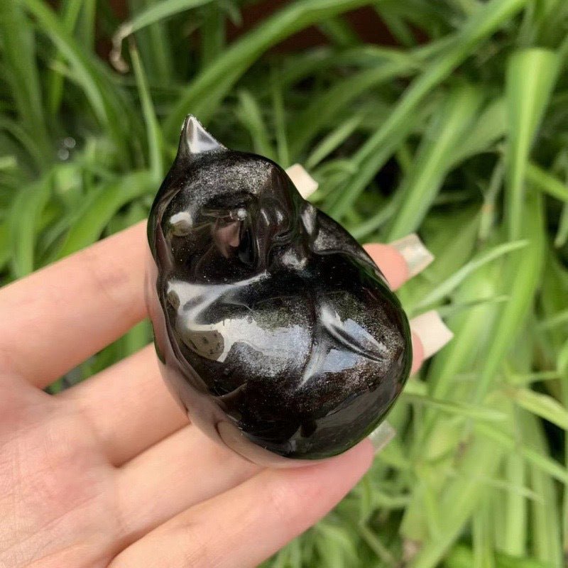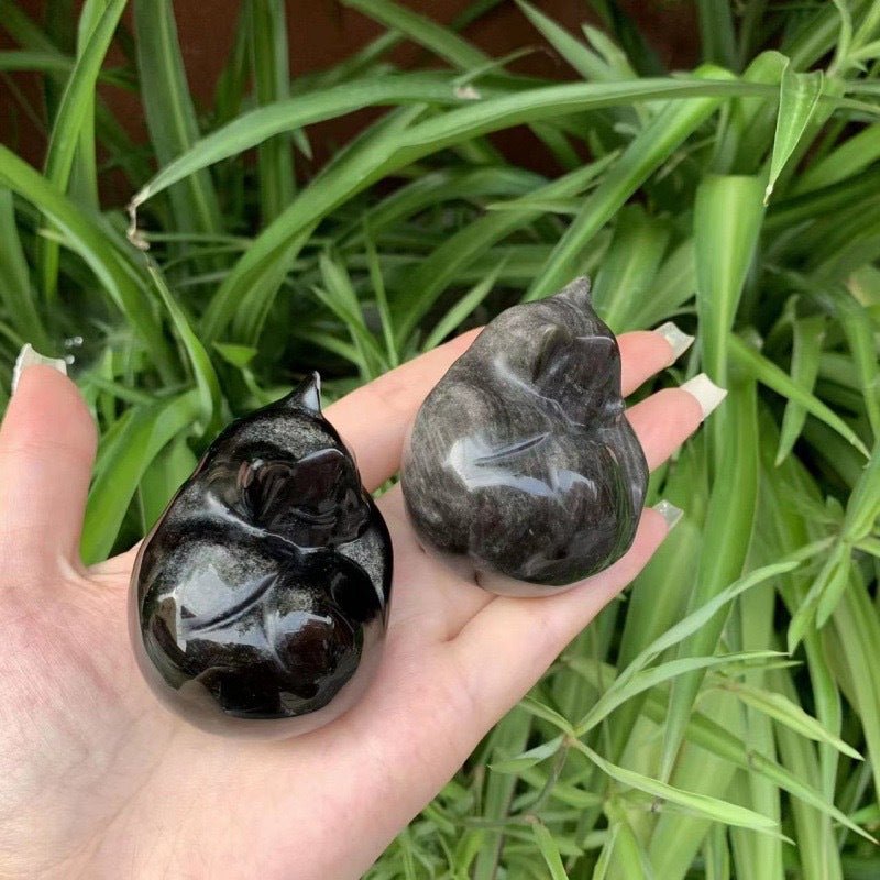 天然水晶银曜石雕刻睡猫水晶小摆件