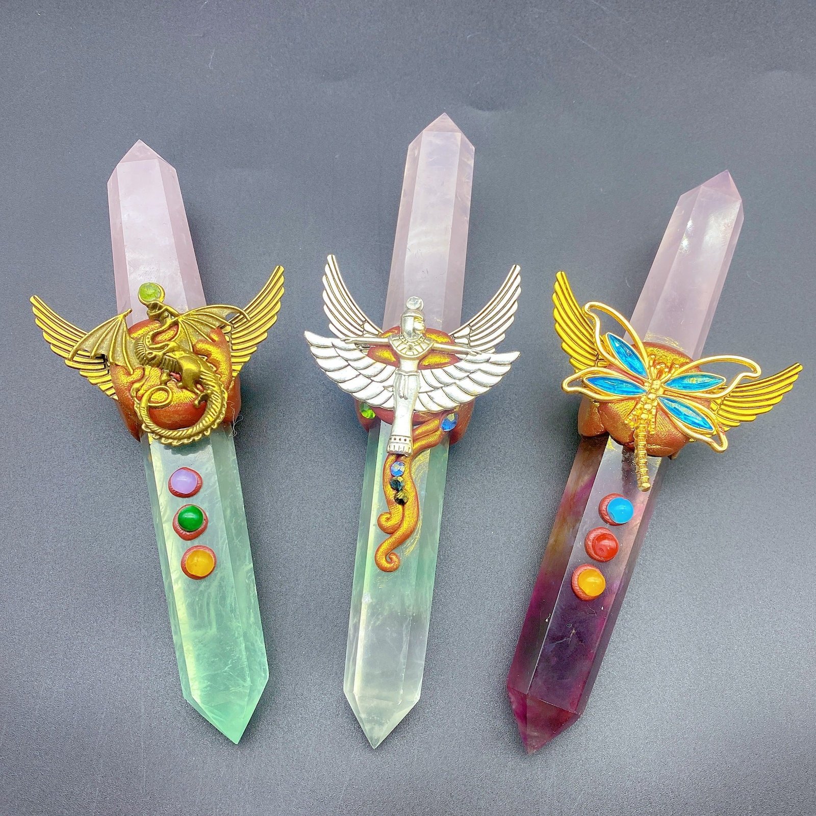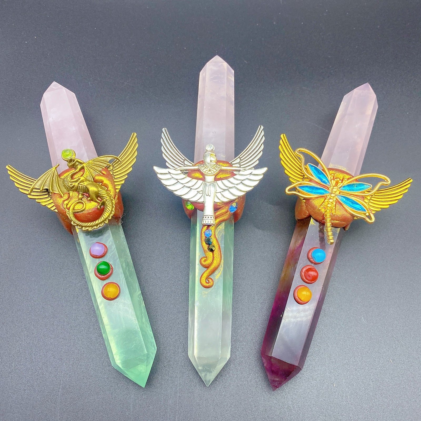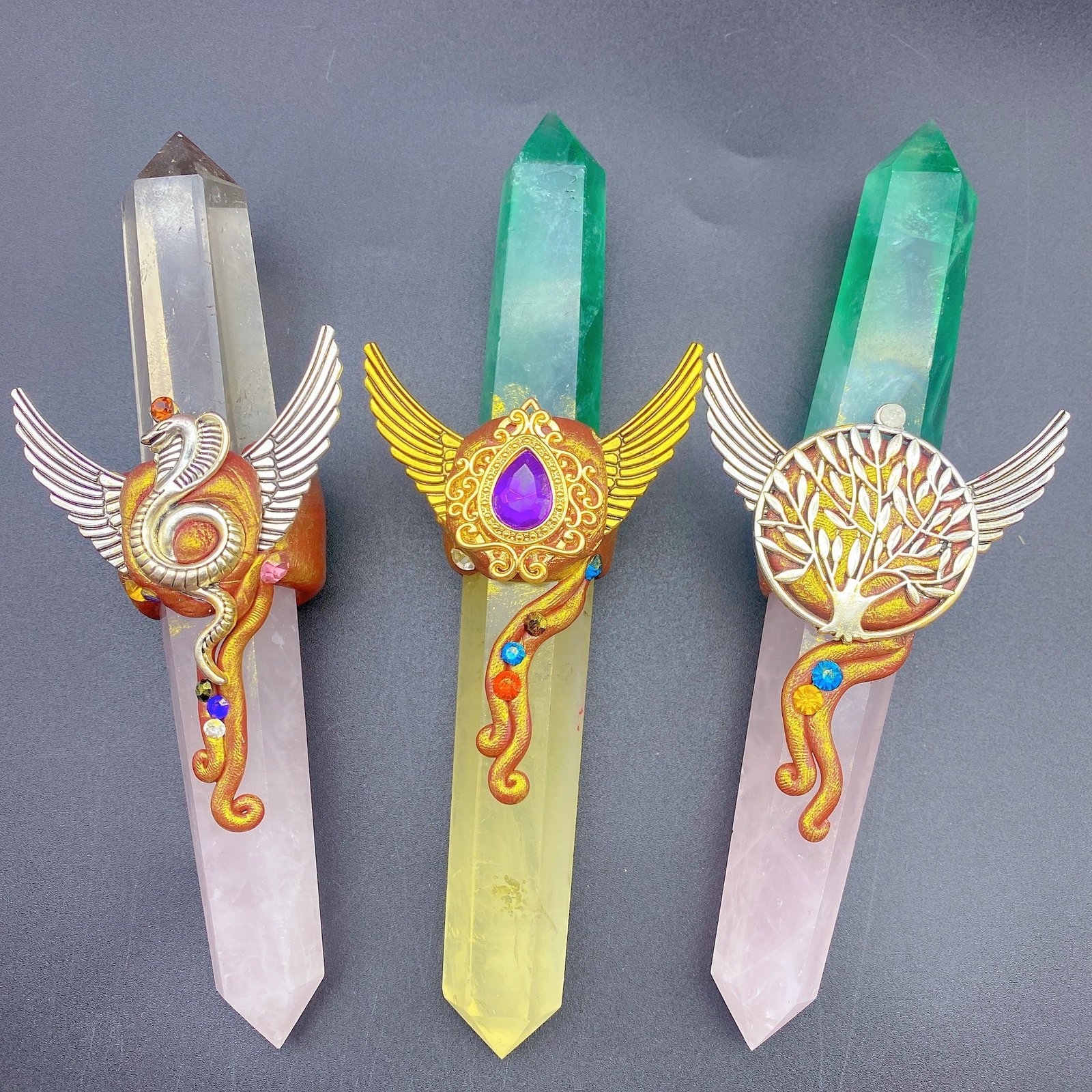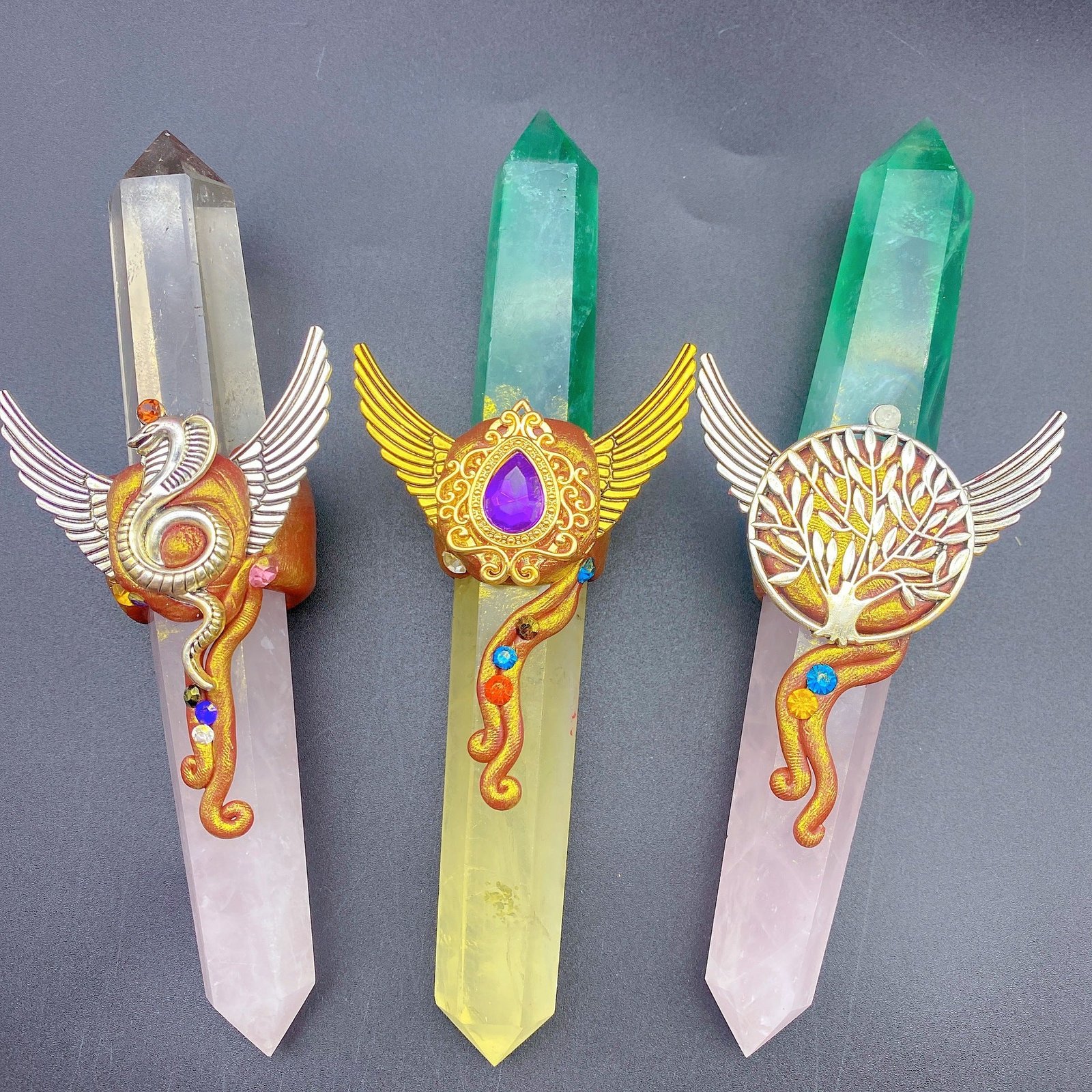 天然水晶魔法权杖魔法棒小摆件桌面摆件手工雕刻件装饰直供
