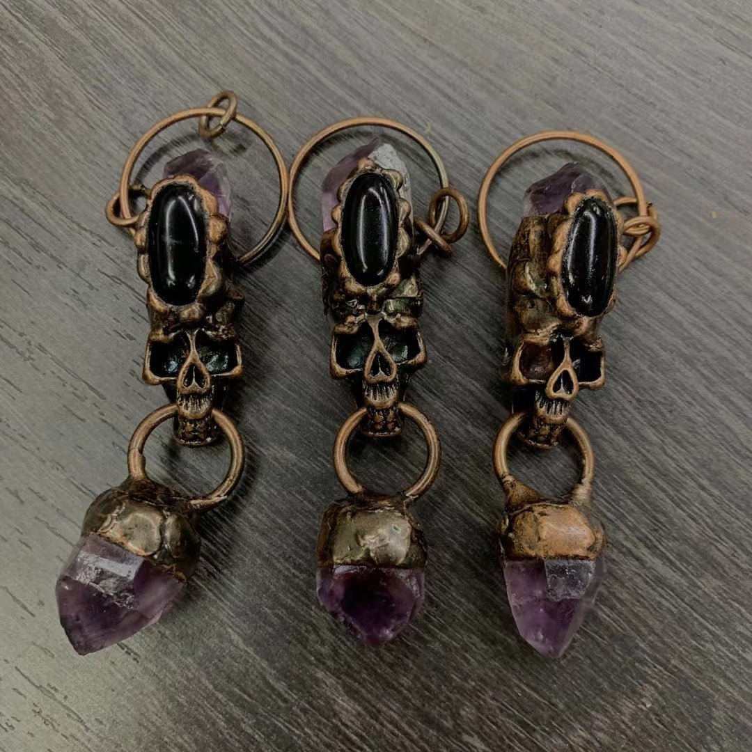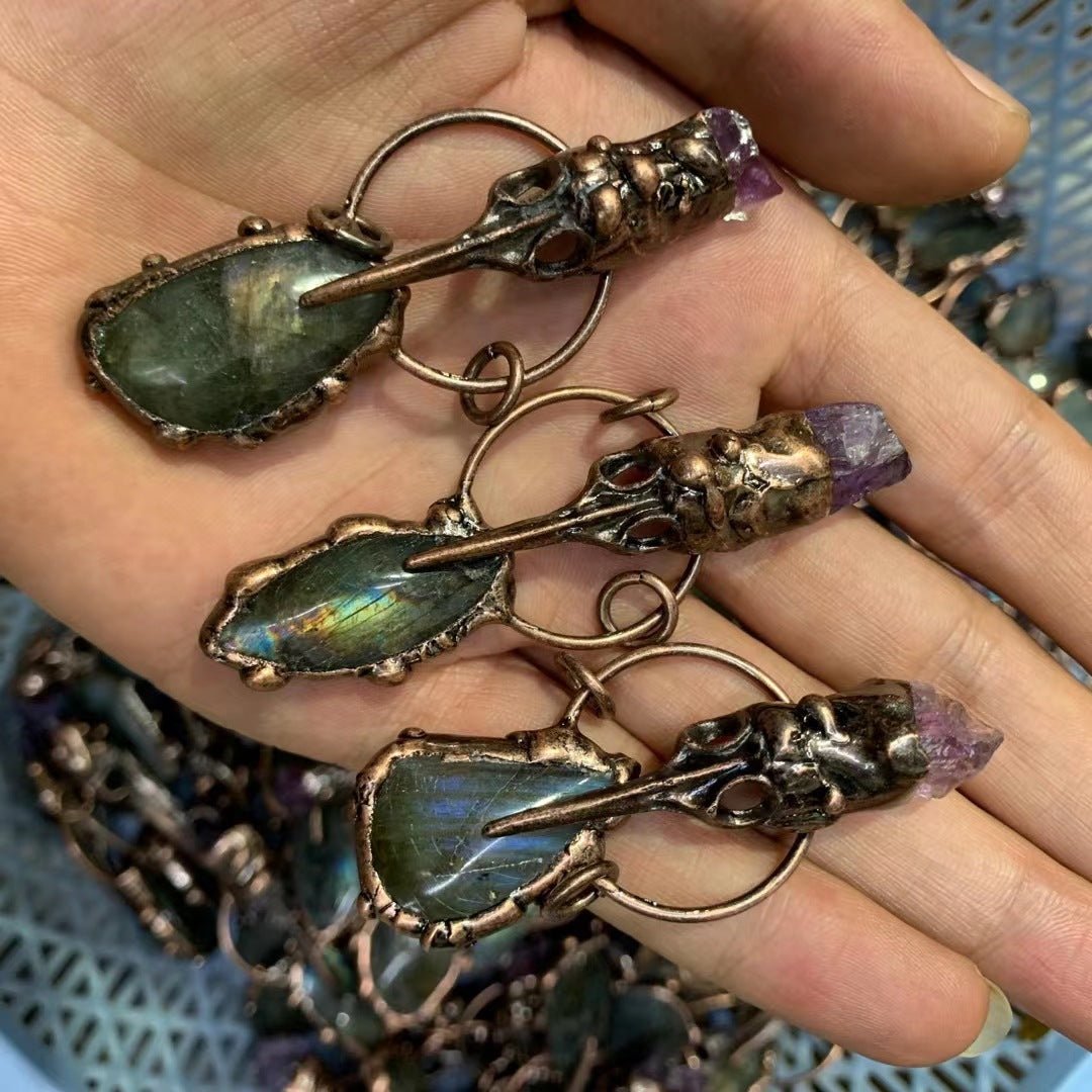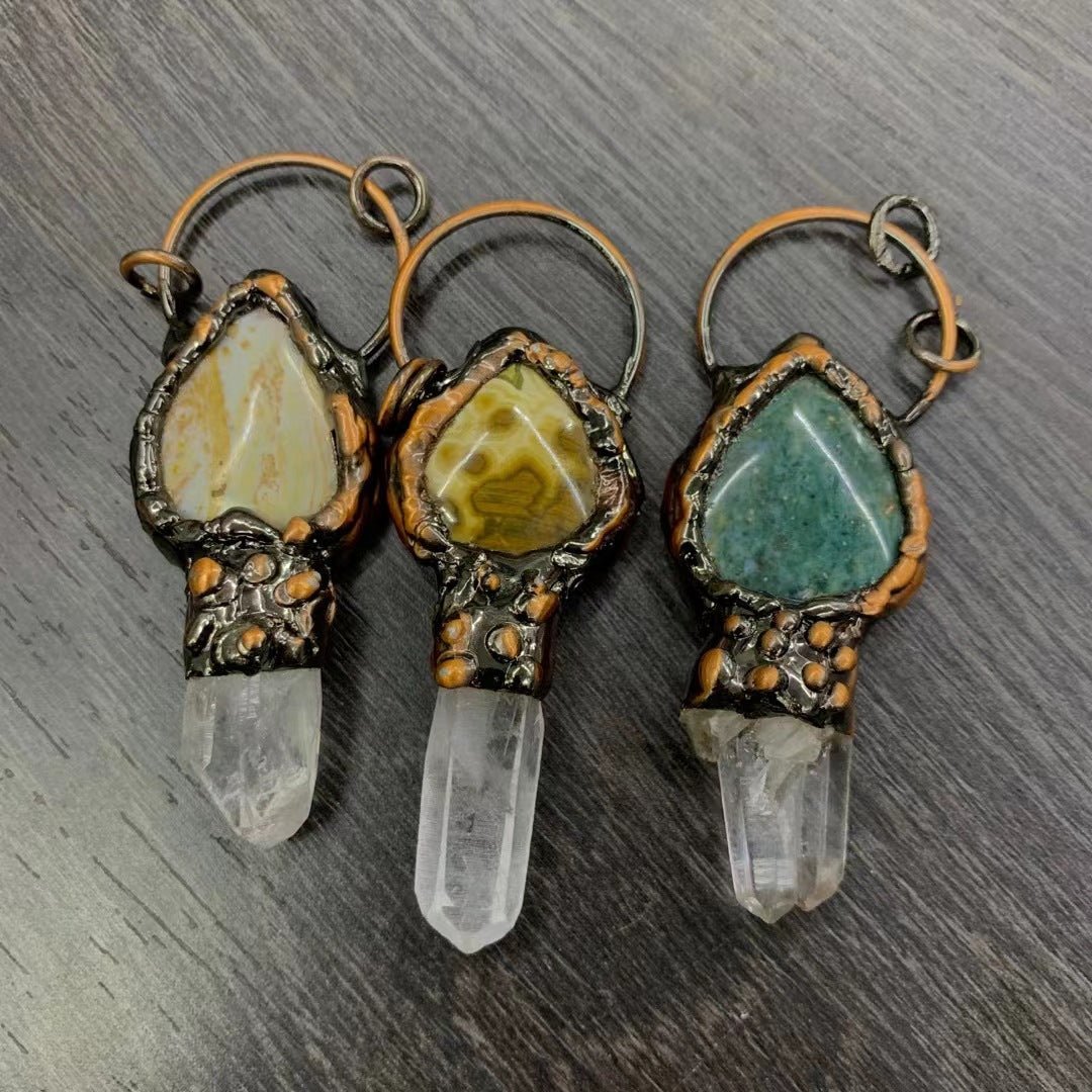 SKU: 7283538198728-天然能量水晶-复古风个性天然水晶石吊坠纯手工包边新品爆款灵气师手工 标签: