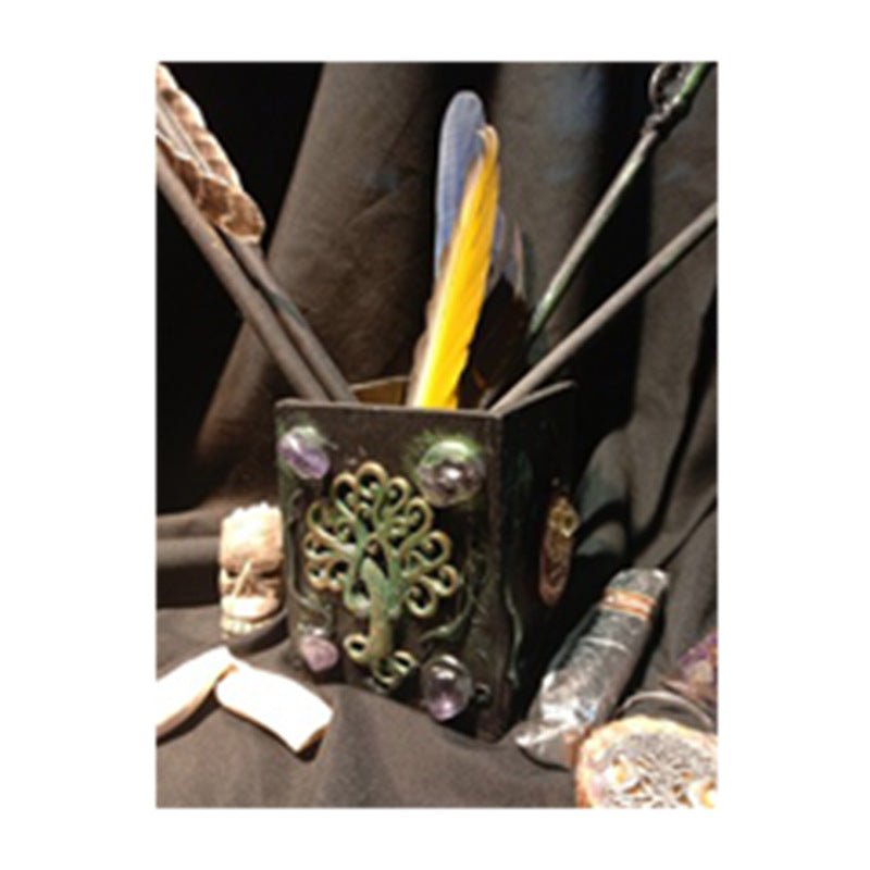 手工艺生命之树紫水晶笔筒 木质文具收纳筒 木质方形笔筒