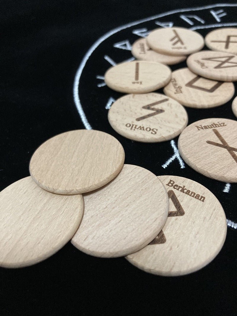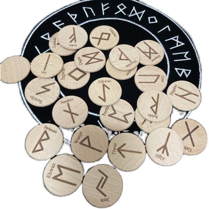 SKU: 7136641614024-木质如尼符文套装神秘学-木片卢恩符号道具-榉木头片runesset-1