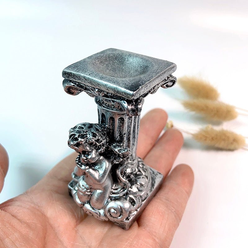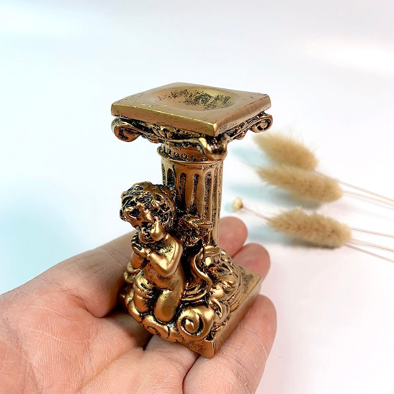 SKU: 7896128618696-树脂球座-水晶球底座-罗马柱小天使球形矿标收纳摆件-适合3-6cm球 分类: 标签: