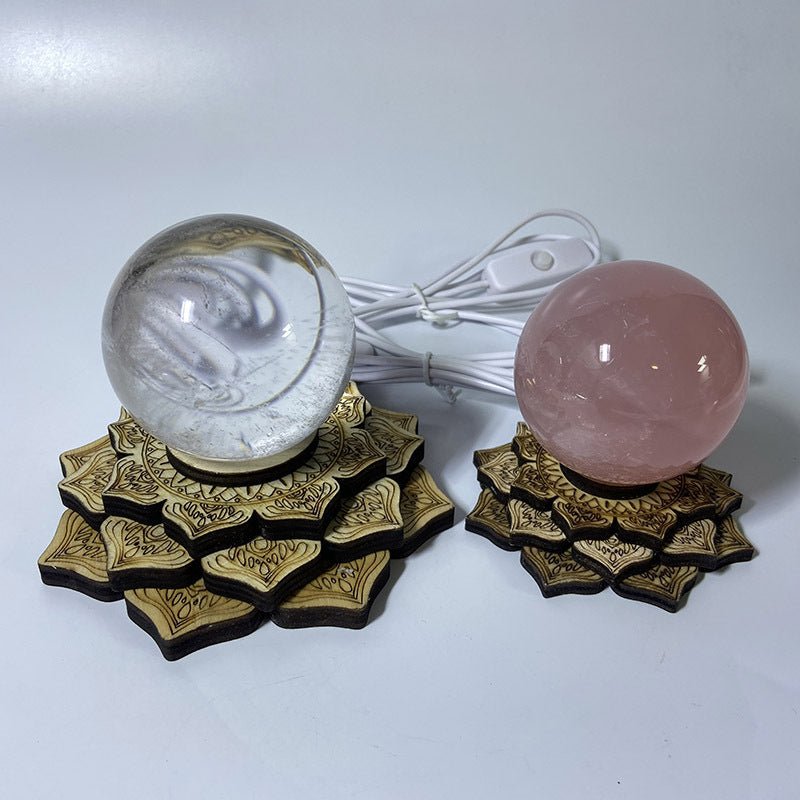 水晶球底座 榉木3D小夜灯创意莲花灯座LED七彩灯光工艺品摆件