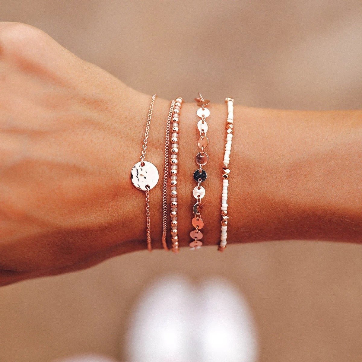 品名:波西米亚风手工串珠圆片手链 简约压纹5件套情侣手链