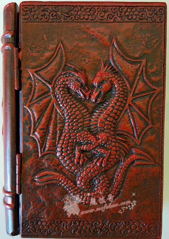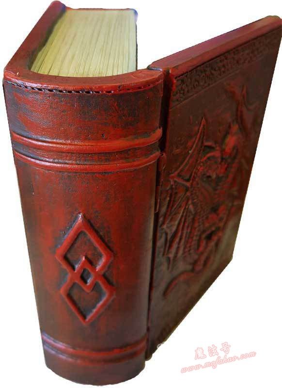 一个漂亮的棕色的小书盒。有压花精美的双龙缠绕,在它的前铰链盖,在其结合边缘压花滚动。安全地保存你的塔罗牌或隐藏你的饰品和珍宝。内部隔间的深度为1×1/4英寸。