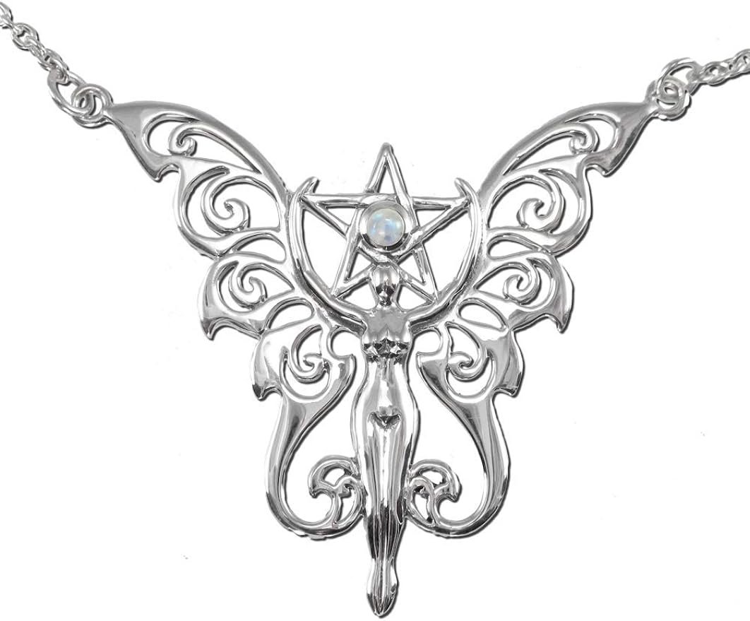 纯银精灵五角星项链,配天然彩虹月光石; 18英寸长