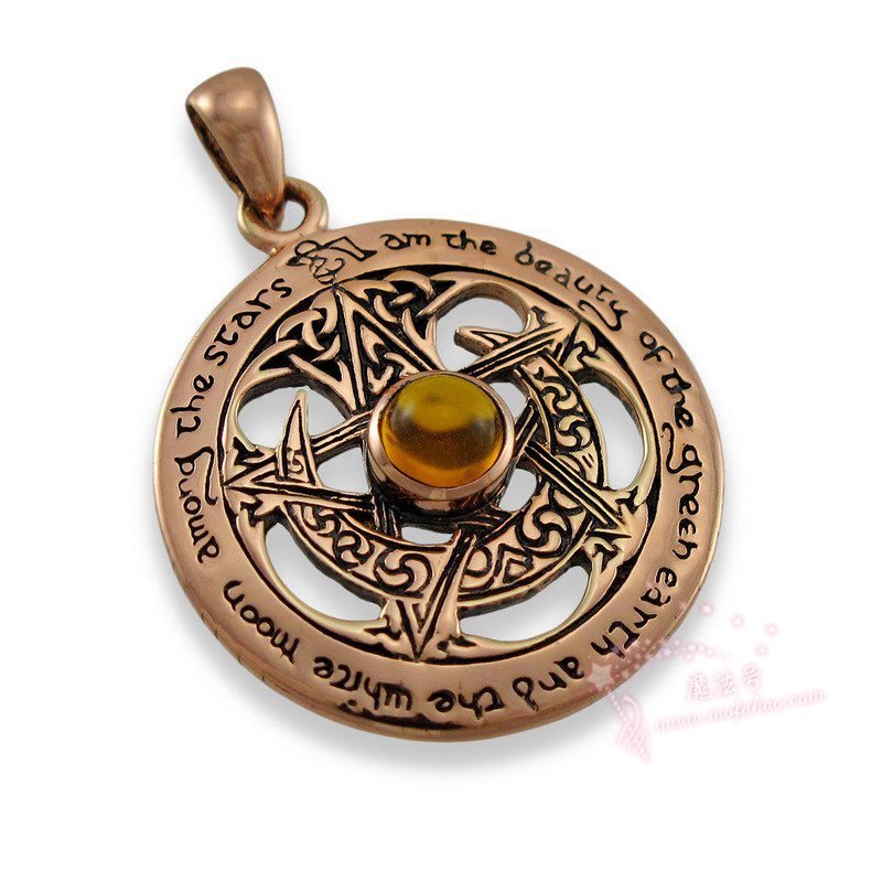 美国女巫铜月亮吊坠五角星琥珀吊坠