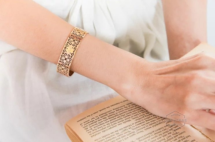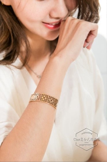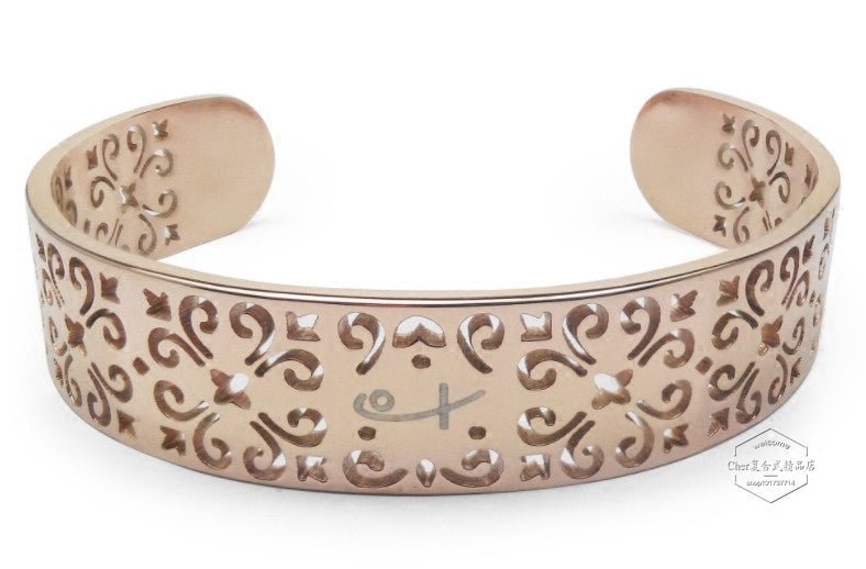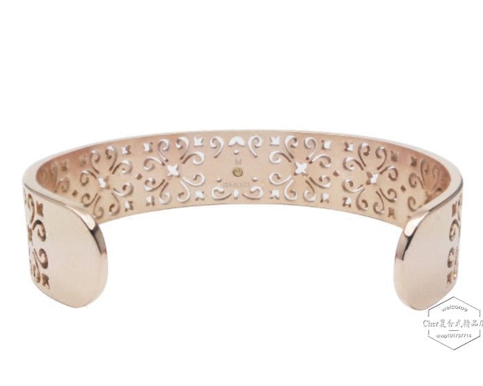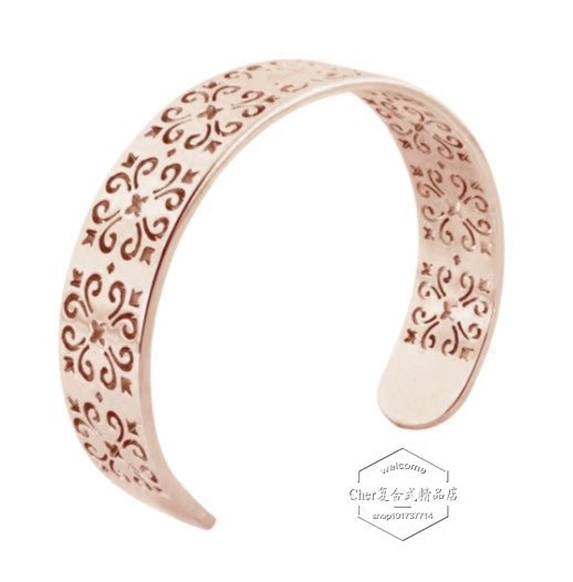 手镯设计为华丽的四叶草衍生带出了独特优雅动人的风格,采用钢合金制成并镀上玫瑰金,优雅华丽又不失流行。