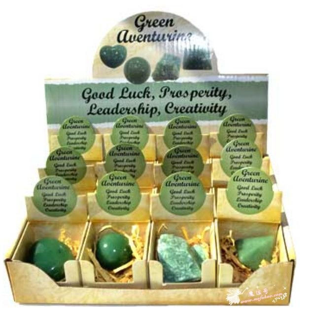 一盒12个绿色东陵石、好运、繁荣、领导力、创造力。你有12种不同的形状,心形,球体,自然形成,金字塔,在大的展示箱里,每一块石头也有它自己的漂亮的小的单独的展示盒,和放在一个木屑垫上。