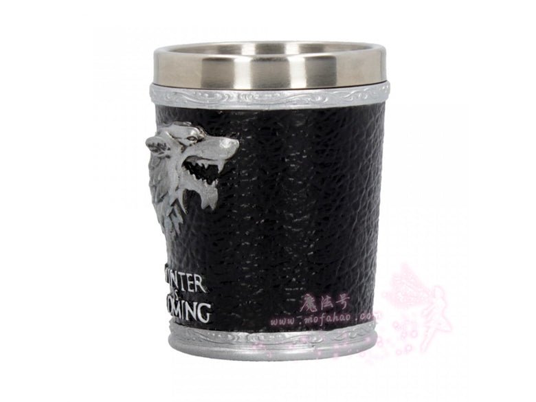 冬天就要来了 (GOT)7厘米 类别:幻想 材料:树脂/不锈钢嵌件 包装:彩盒赠送一个适合北方国王的礼物,这个神奇的树脂钢化杯。这个玻璃窗设计简单,以斯塔克·西格尔和他们的座右铭“冬天来了”为特色。在顶部,可拆卸不锈钢嵌件出现。在用最优质的树脂浇铸而成,再经过精心的手绘,这是向真正的国王乔恩·斯诺宣誓效忠的完美方式。