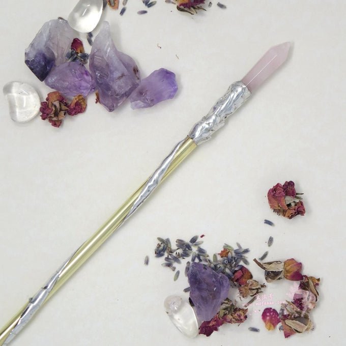 水晶魔杖/粉晶水晶巫术魔杖/巫术祭坛/精神能量仪式工具/巫术魔杖