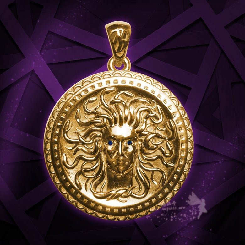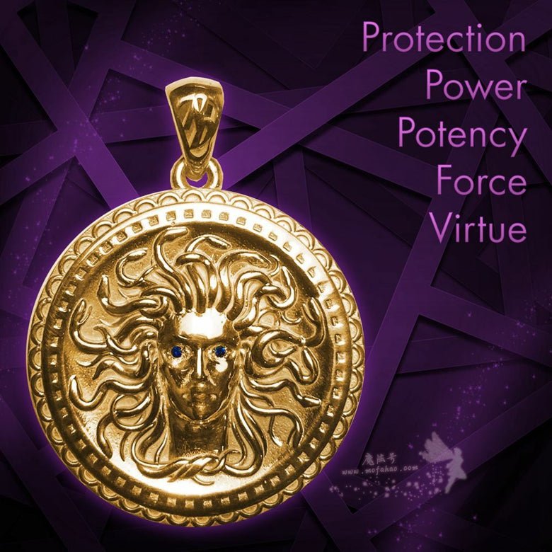 美杜莎的头像,你在护身符的正面看到的,它是一种保护自己免受任何侵害护身符所有者的邪恶侵害的象征。