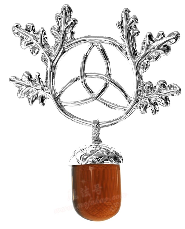 Triskel Oak有橡树叶子围绕着一个Triskel celtic结,从中有一个橡子形状和颜色的水晶,可以穿用于个人成长和发展。