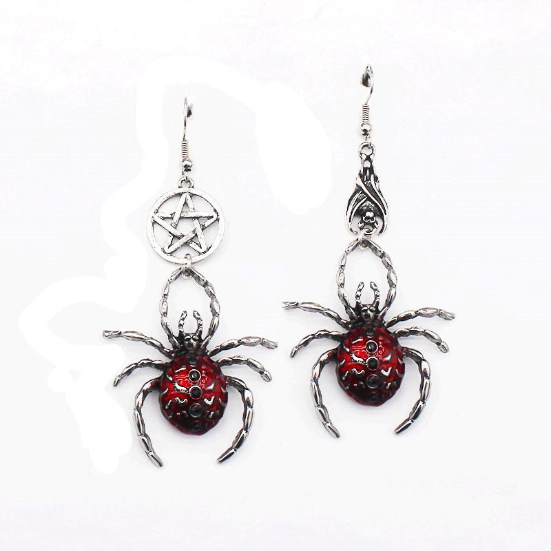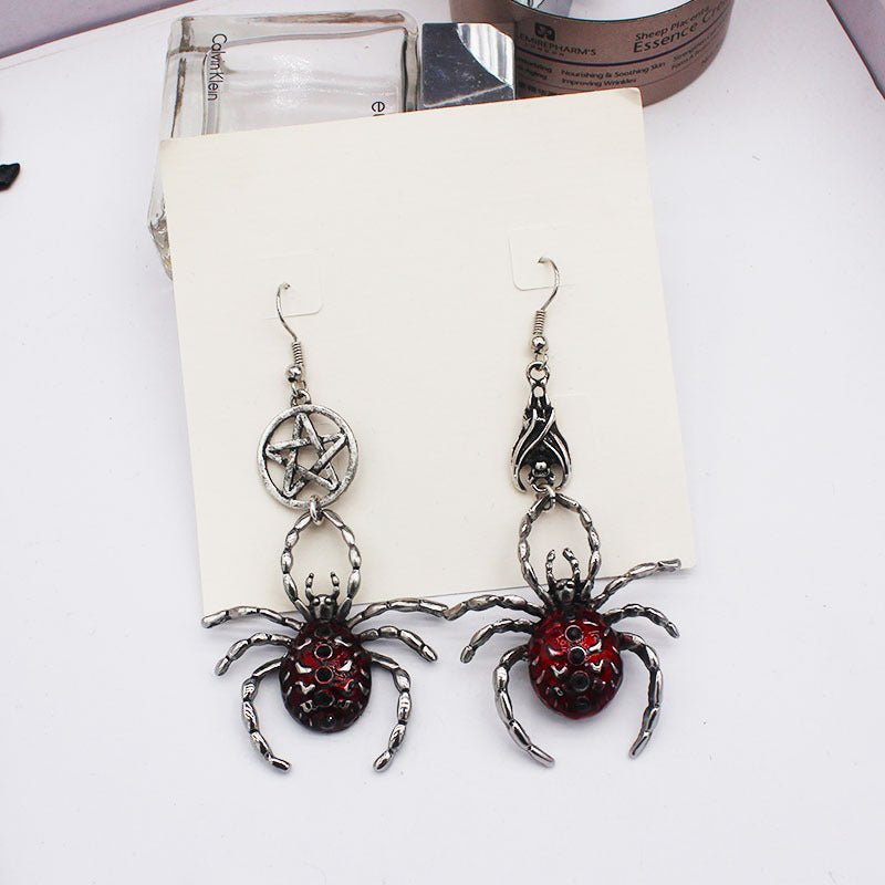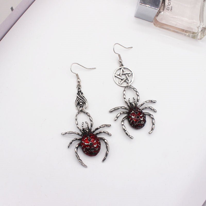 GOTHIC饰品 欧美跨境朋克饰品耳环 万圣节新款搞怪蝙蝠五星红色滴油蜘蛛耳饰 哥特饰品
